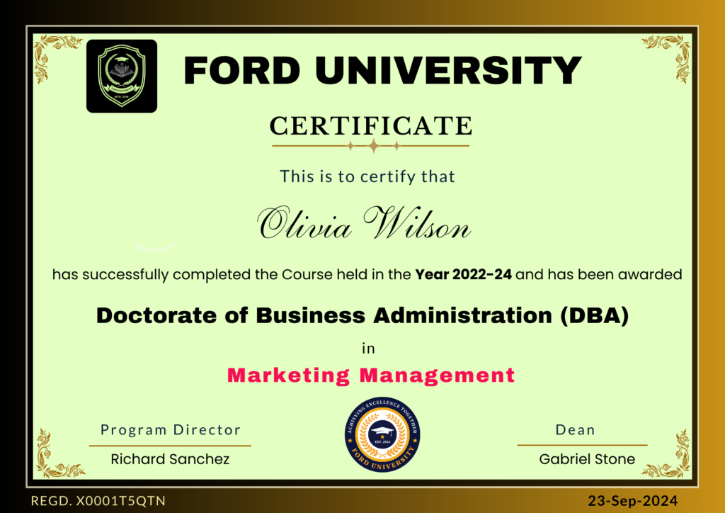 “It was a great experience studying at Ford University, Singapore. My experience at Ford University was full of learning and grooming. Being a global University, it gave me an opportunity to meet different kind of people from around the world. 2 Years DBA was made so easy for us and yet so fulfilling".