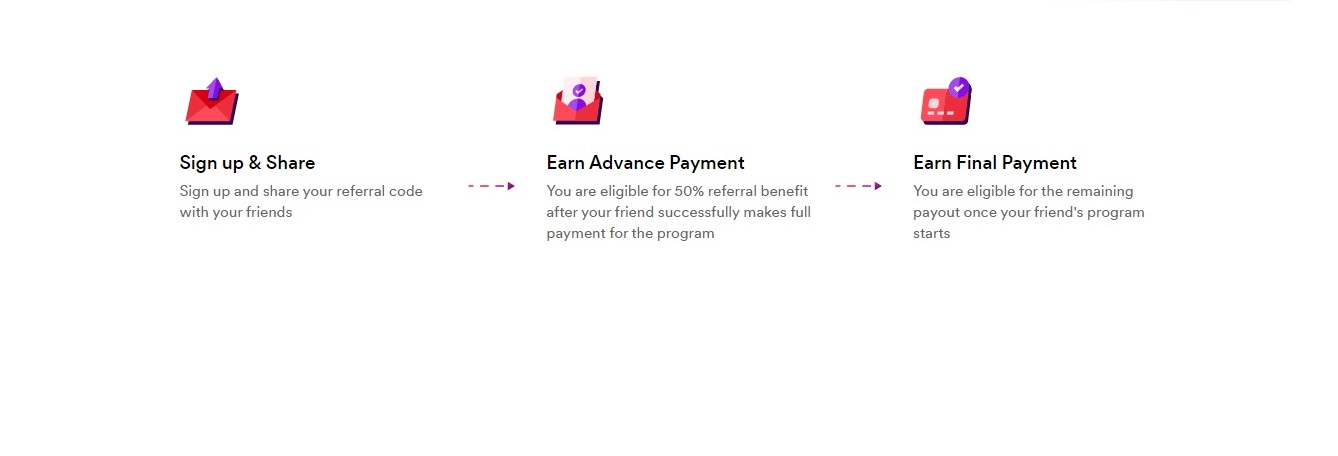 Recommend a Friend Refer and Earn 15-20% of program fee (up to $500, which ever is lower) for each friend who successfully enrolls! Your family/friends enjoys the highest pre applied fee waiver of up to $1000/ Free course if they enroll using your referral code! Start Referring How to Earn Referral Benefits?
